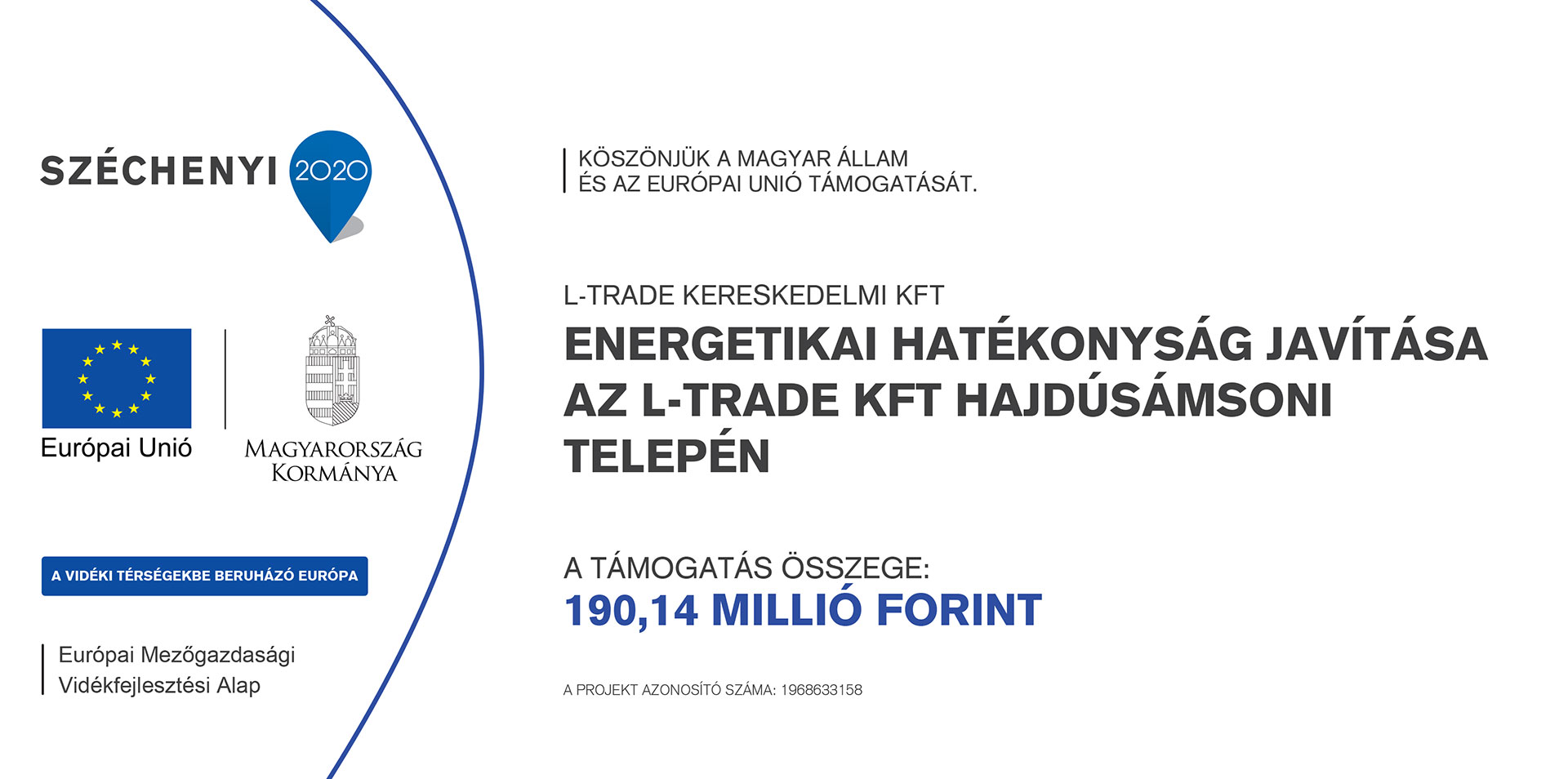 • A projekt címe: Energetikai hatékonyság javítása az L-Trade Kft. hajdúsámsoni telepén